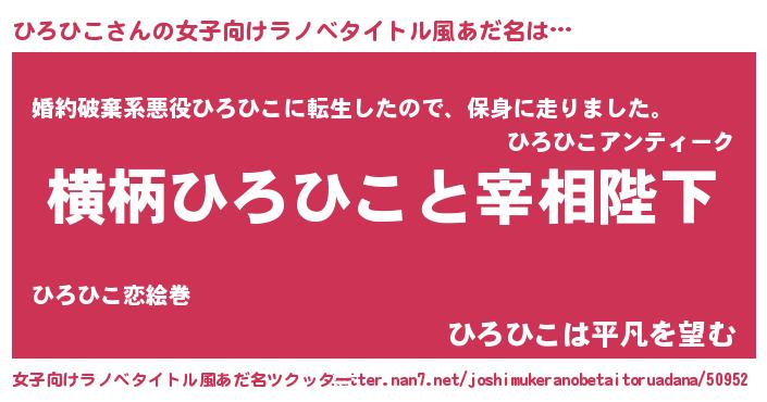 | ヒーロー風カッコイイあだ名 | 『幻影騎士ヒロ』『超時空戦士ヒロヒコ』 |
