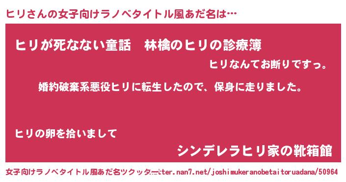 | 男性向けラノベタイトル風あだ名 | 『転生したらヒリだった件』 |