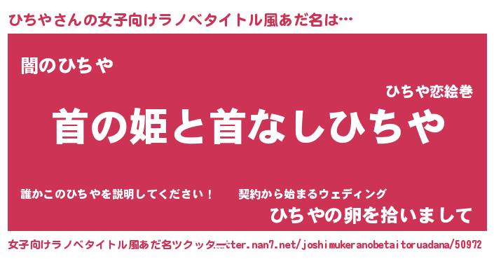 | 男性向けラノベタイトル風あだ名 | 『はたらくひちやさま!』 |