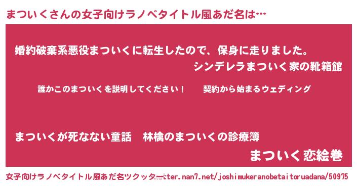 | 男性向けラノベタイトル風あだ名 | 『マツイクアートオンライン』 |