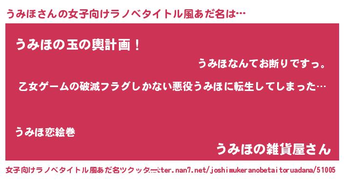 | 意味不明あだ名 | 『住所不定無職うみほ(40歳)』『自称うみほ』 |