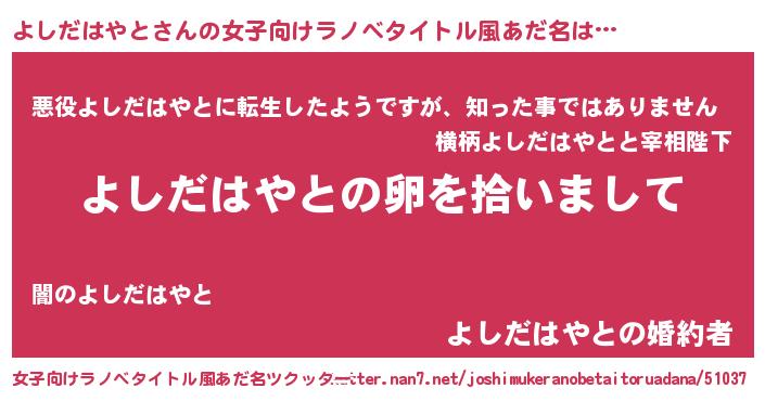 | 胡散臭い通販商品みたいなあだ名 | 『伝統あるサプリメント…その名も「よしだはやと」』 |