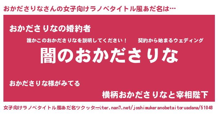 | 男性向けラノベタイトル風あだ名 | 『Re:おかださりなから始める異世界生活』 |