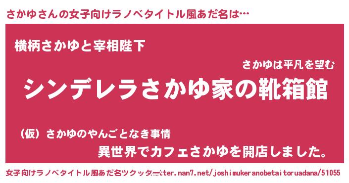| 男性向けラノベタイトル風あだ名 | 『緋弾のサカユ』『さかゆの憂鬱』 |