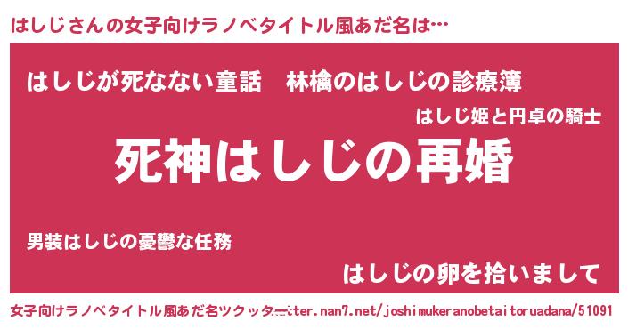 | 男性向けラノベタイトル風あだ名 | 『ノーゲーム・ノーハシジ』 |