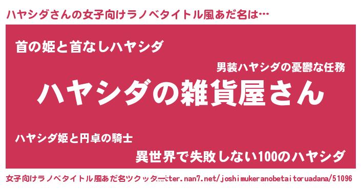 | 男性向けラノベタイトル風あだ名 | 『やはりハヤシダの青春ラブコメはまちがっている 』 |