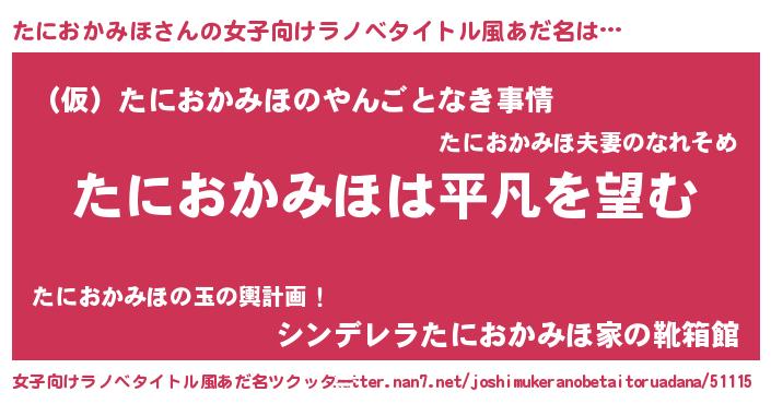 | 男性向けラノベタイトル風あだ名 | 『ダンジョンにたにおかみほを求めるのは間違っているだろうか』 |