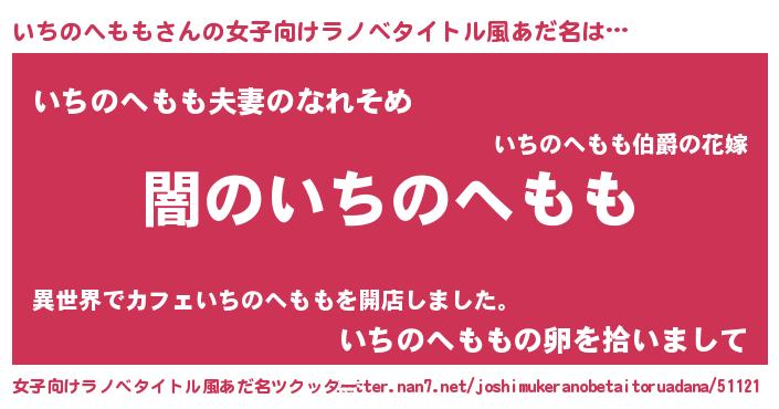 | 男性向けラノベタイトル風あだ名 | 『Re:いちのへももから始める異世界生活』 |