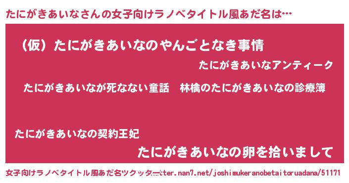 | 意味不明あだ名 | 『住所不定無職たにがきあいな(47歳)』 |