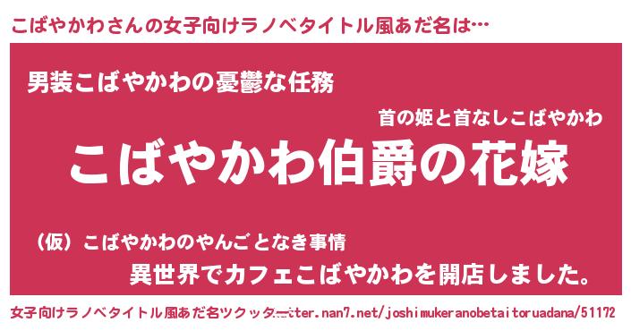| 欧米人風あだ名 | 『こばやかわクリステル』 |