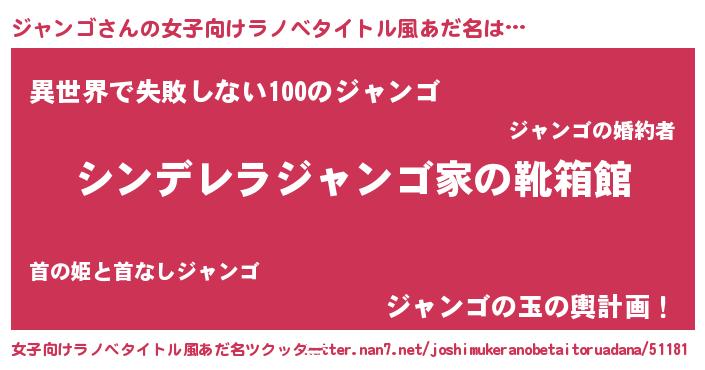 | 意味不明あだ名 | 『永久保存ジャンゴ』 |