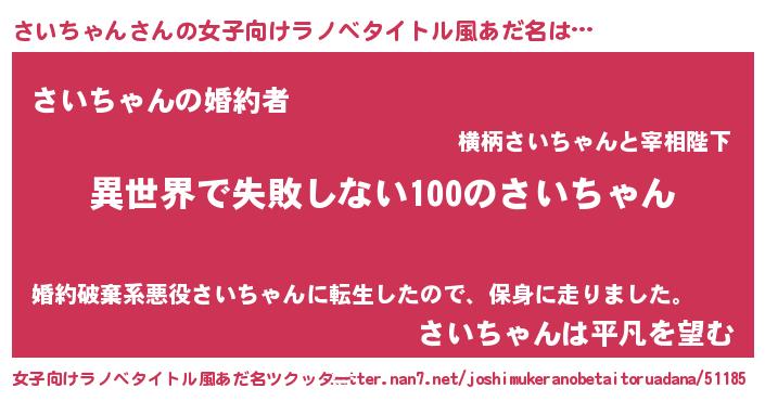 | 男性向けラノベタイトル風あだ名 | 『さいちゃんという概念が存在しない退屈な世界 』 |
