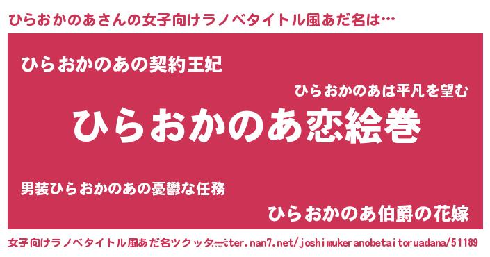 | 男性向けラノベタイトル風あだ名 | 『ノーゲーム・ノーヒラオカノア』 |