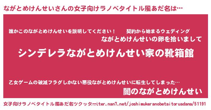 | 胡散臭い通販商品みたいなあだ名 | 『必ず成功する霊験あらたかなお札…その名も「ながとめけんせい」』 |