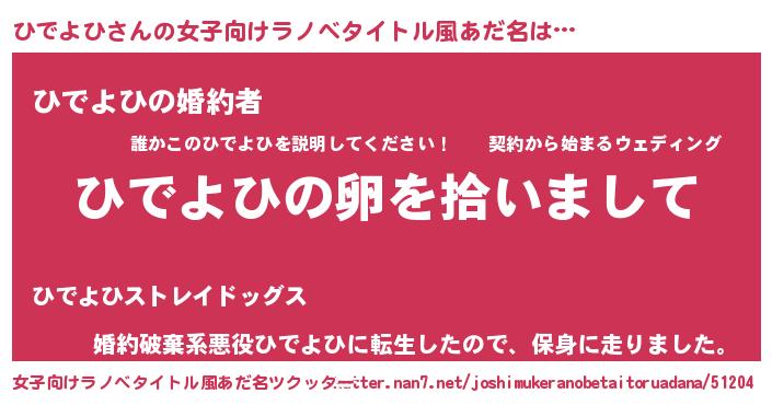 | 男性向けラノベタイトル風あだ名 | 『ダンジョンにひでよひを求めるのは間違っているだろうか』 |