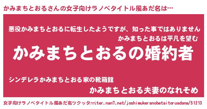 | 胡散臭い通販商品みたいなあだ名 | 『運命の人と巡り会える高級そうな絵画…その名も「かみまちとおる」』 |