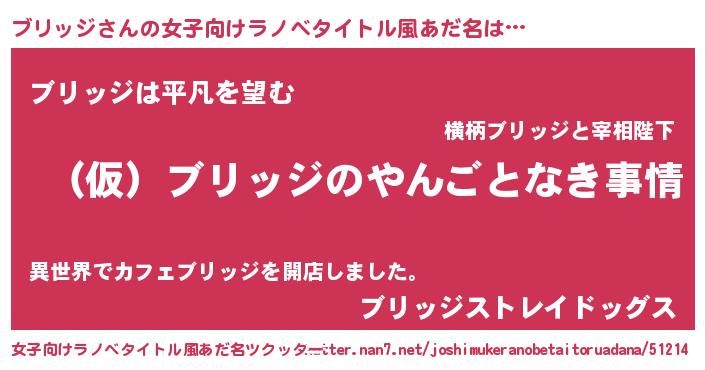 | 男性向けラノベタイトル風あだ名 | 『ブリッジの憂鬱』 |