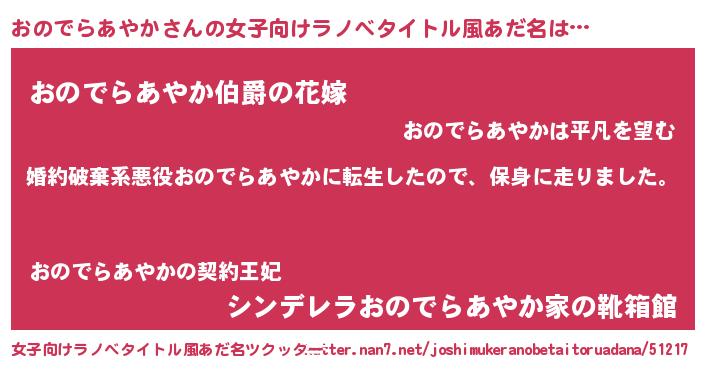 | 男性向けラノベタイトル風あだ名 | 『オノデラアヤカスレイヤー』 |