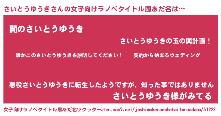 | 男性向けラノベタイトル風あだ名 | 『サイトウユウキアートオンライン』 |