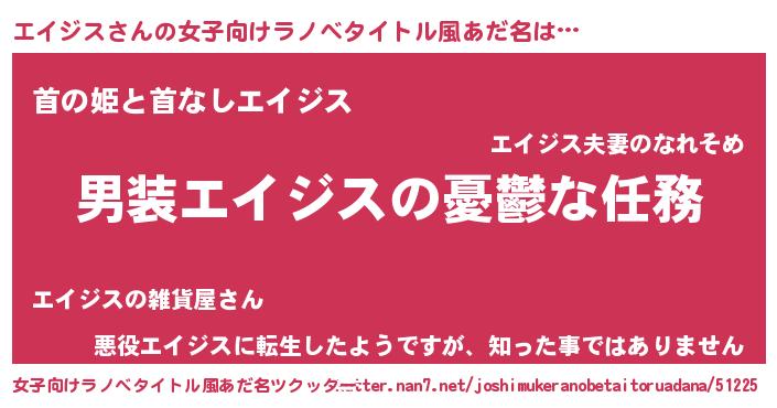 | 意味不明あだ名 | 『住所不定無職エイジス(81歳)』 |