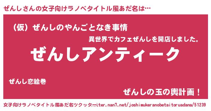 | 男性向けラノベタイトル風あだ名 | 『魔法科高校のぜんし』『ぜんしの憂鬱』 |