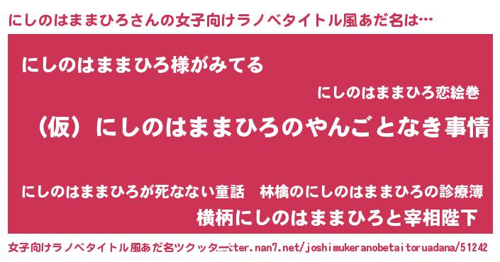 | 男性向けラノベタイトル風あだ名 | 『にしのはままひろの憂鬱』 |