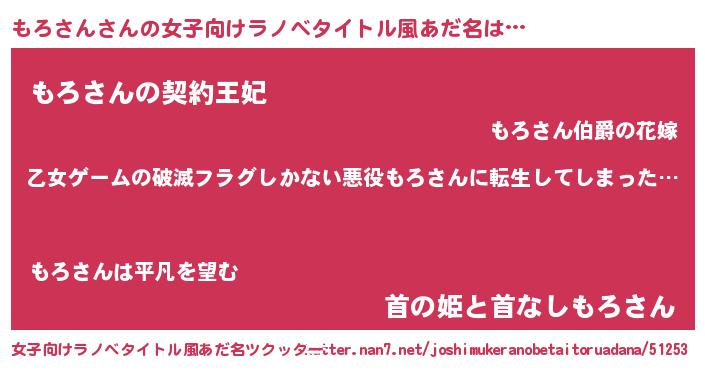 | 意味不明あだ名 | 『住所不定無職もろさん(14歳)』 |