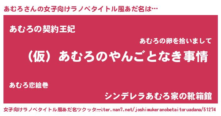| 男性向けラノベタイトル風あだ名 | 『あむろの憂鬱』 |