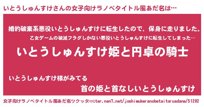 | 男性向けラノベタイトル風あだ名 | 『いとうしゅんすけの憂鬱』 |