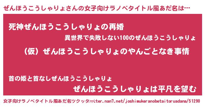 | 男性向けラノベタイトル風あだ名 | 『ぜんほうこうしゃりょの憂鬱』 |