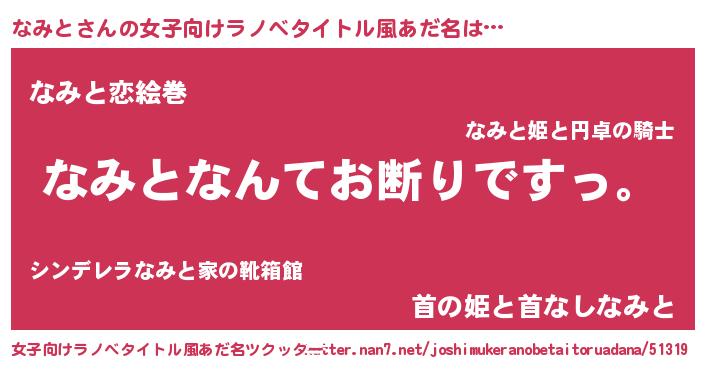 | 男性向けラノベタイトル風あだ名 | 『魔法科高校のなみと』『緋弾のナミト』 |