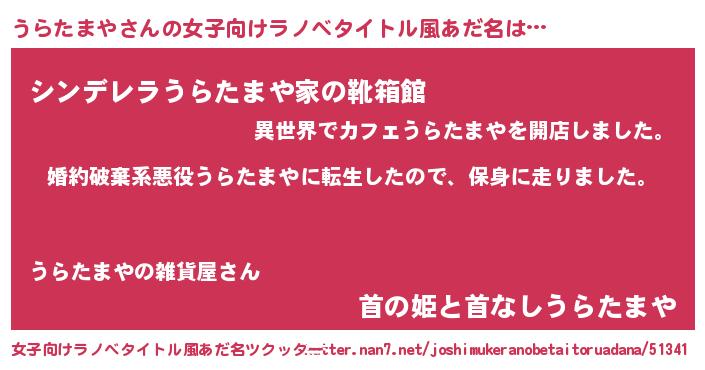 | 胡散臭い通販商品みたいなあだ名 | 『絶対に幸福をもたらす水素水…その名も「うらたまや」』 |