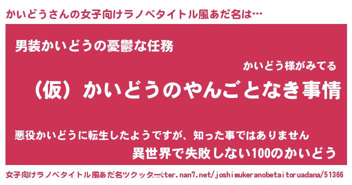 | 男性向けラノベタイトル風あだ名 | 『かいどうの憂鬱』 |