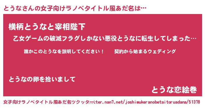 | 男性向けラノベタイトル風あだ名 | 『トウナアートオンライン』 |