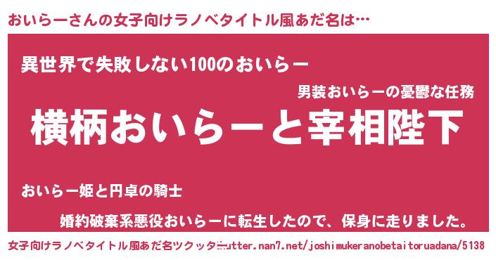 | ヘコむあだ名 | 『おいらー(笑)』『おいふぇ~』 |