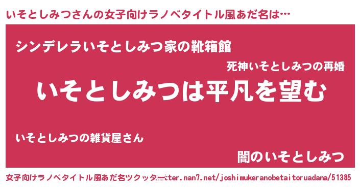 | 胡散臭い通販商品みたいなあだ名 | 『信頼と実績のペンダント…その名も「いそとしみつ」』 |