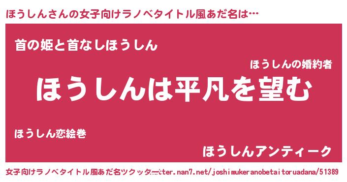 | ヒーロー風カッコイイあだ名 | 『暗黒騎士ホウ』『超時空戦士ホウシン』 |
