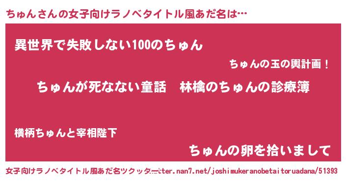 | ヘコむあだ名 | 『ちゅん(苦笑)』『ちゅ太郎』 |