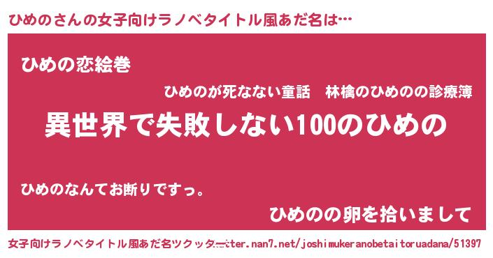 | 意味不明あだ名 | 『永久保存ひめの』『自称ひめの』 |