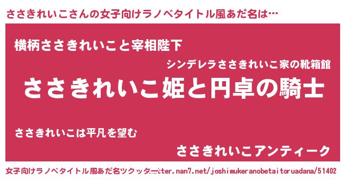 | 男性向けラノベタイトル風あだ名 | 『ささきれいこの憂鬱』 |