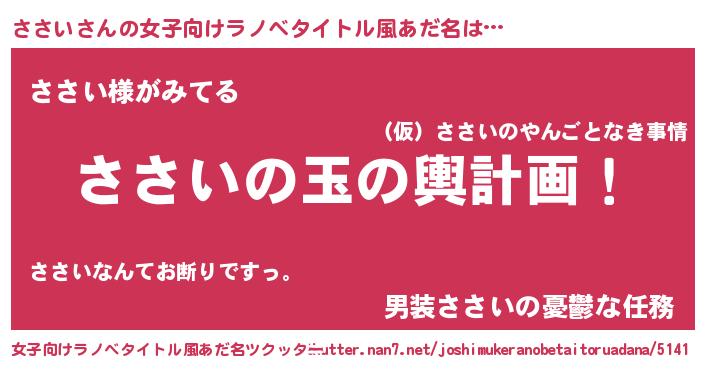 | 男性向けラノベタイトル風あだ名 | 『ささい~年齢イコール彼女いない歴の魔法使い~』 |