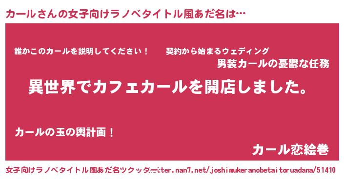 | 男性向けラノベタイトル風あだ名 | 『誰もが恐れるあのカールが、ぼくの専属メイドになるようです。』 |