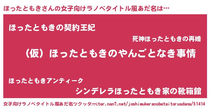 | 胡散臭い通販商品みたいなあだ名 | 『必ず成功する霊験あらたかなお札…その名も「ほったともき」』 |