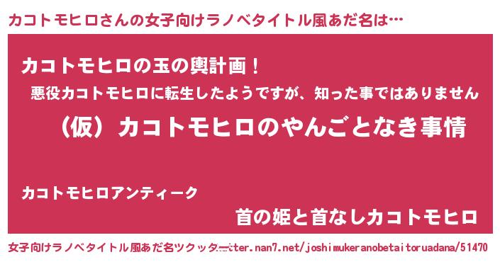 | 男性向けラノベタイトル風あだ名 | 『カコトモヒロの憂鬱』 |