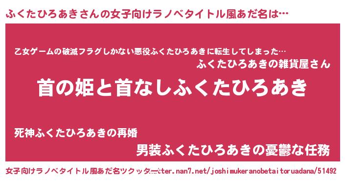 | 意味不明あだ名 | 『住所不定無職ふくたひろあき(3歳)』 |