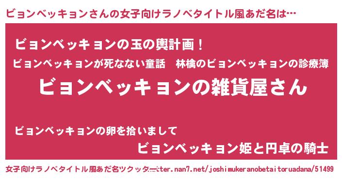 | 男性向けラノベタイトル風あだ名 | 『やはりビョンベッキョンの青春ラブコメはまちがっている 』 |