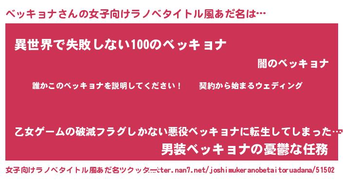| 男性向けラノベタイトル風あだ名 | 『ベッキョナアートオンライン』 |