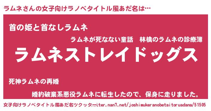 | 胡散臭い通販商品みたいなあだ名 | 『芸能人もオススメするアガリクス…その名も「ラムネ」』 |