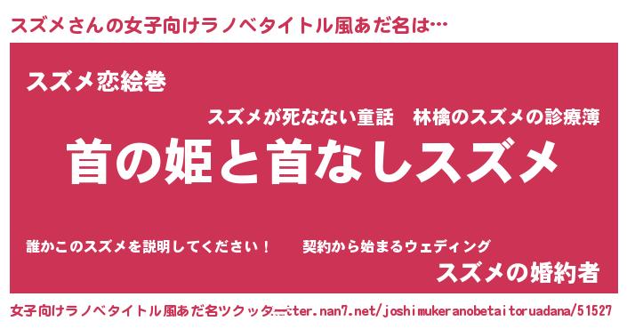 | 男性向けラノベタイトル風あだ名 | 『はたらくスズメさま!』 |