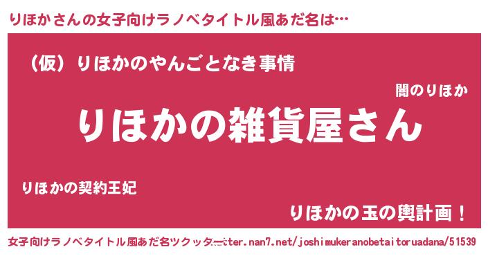 | 男性向けラノベタイトル風あだ名 | 『やはりりほかの青春ラブコメはまちがっている 』 |